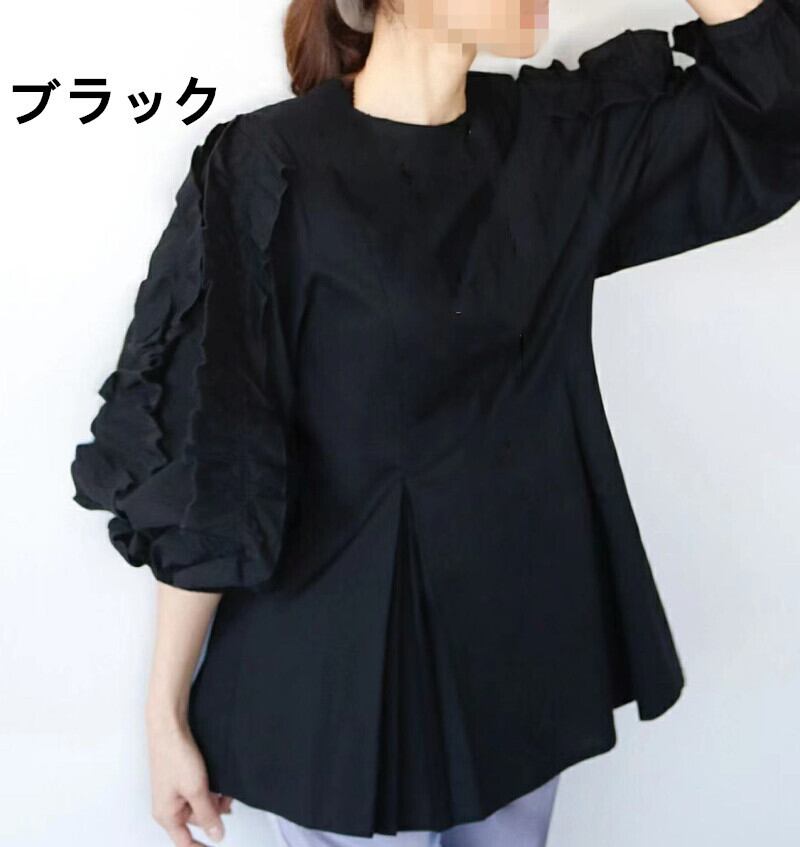 ブラウス 韓国風 レディーストップス 人気シャツ ラウンドネック ランタンスリープ