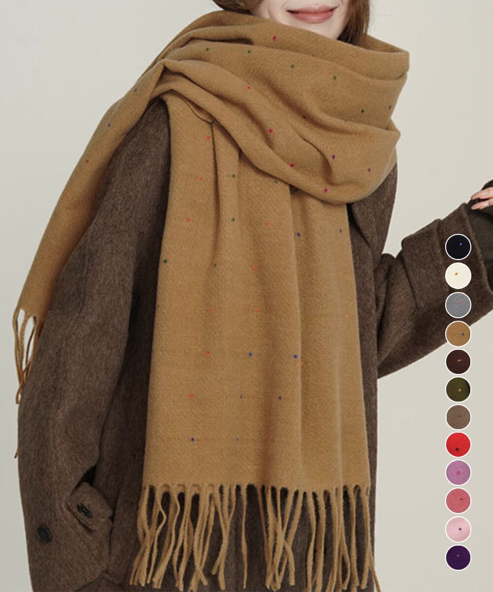 大判サイズで、肩掛けやひざ掛けなど、巻き方次第で多彩なスタイルを楽しめます。