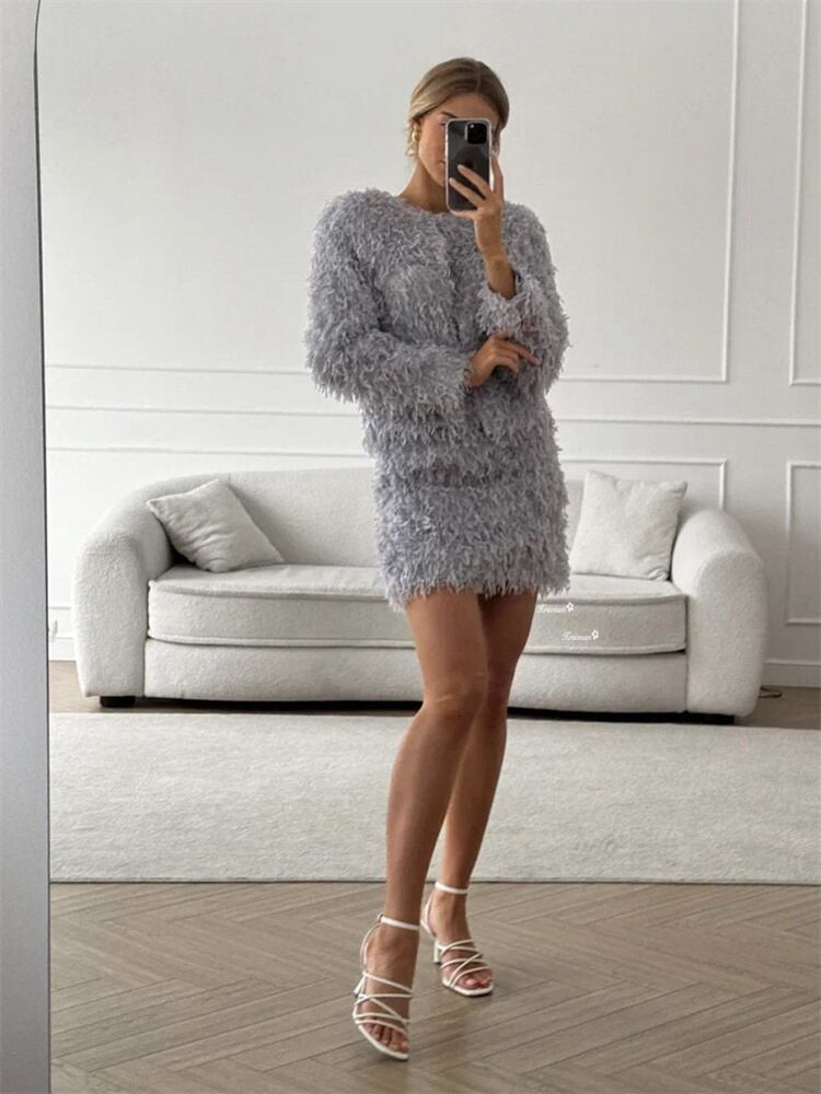 気軽に着れるあったかアイテム スカート ハイウエスト秋冬 コート フリンジコート セットアップ