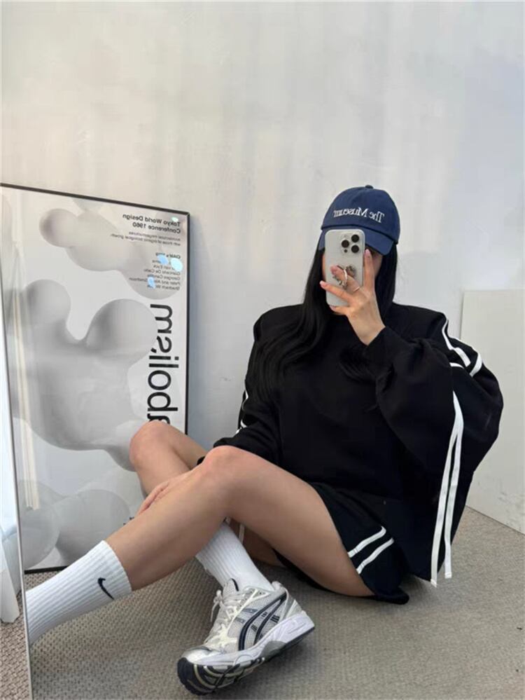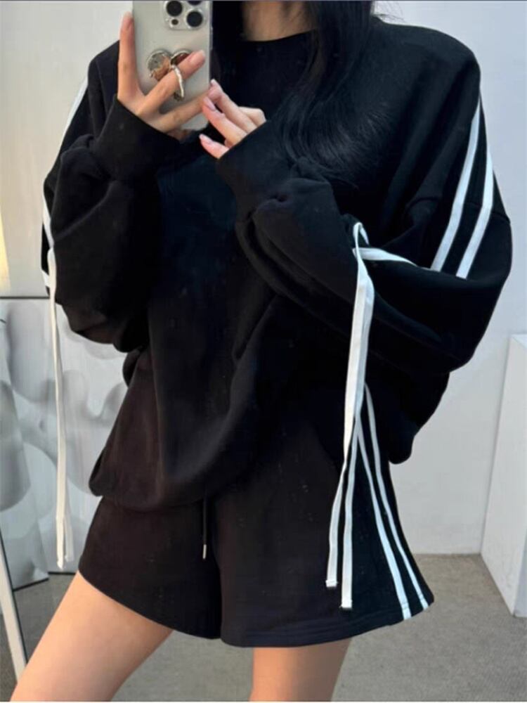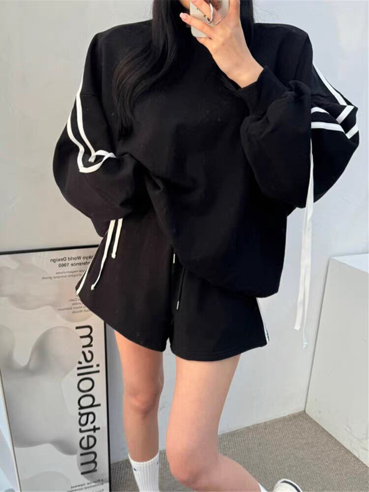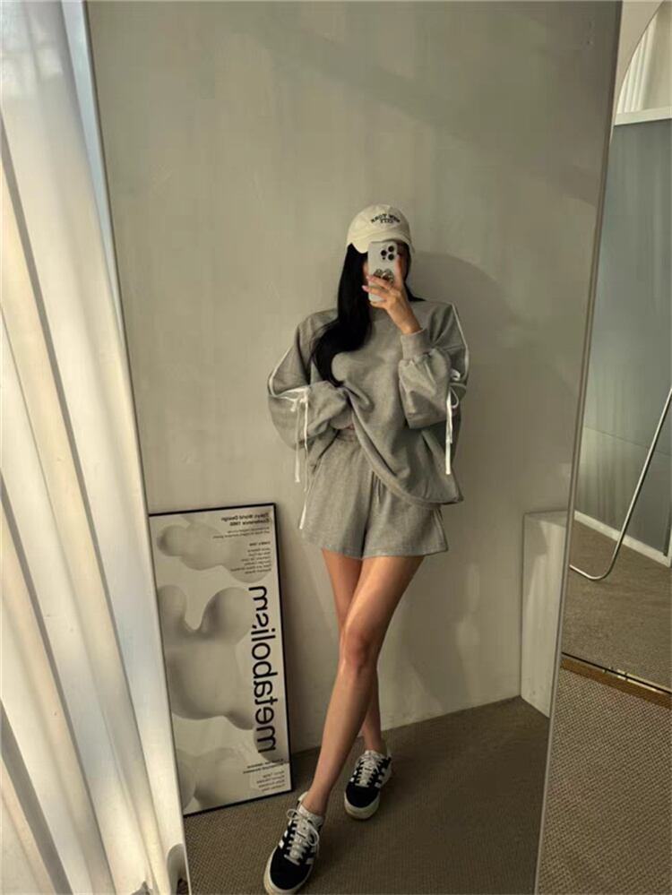 簡単おしゃれに見える服 蝶ネクタイ ラウンドネック 長袖 パーカー スポーツ ショートパンツ セットアップ