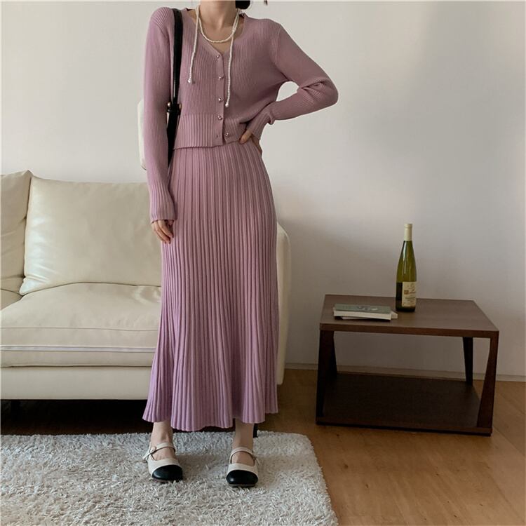 カットソー セットアップ 秋冬 カーディガン ニットトップス ニットスカート