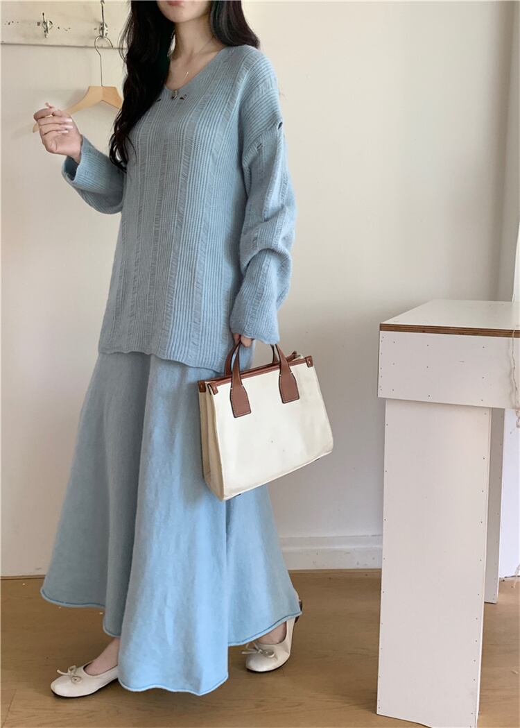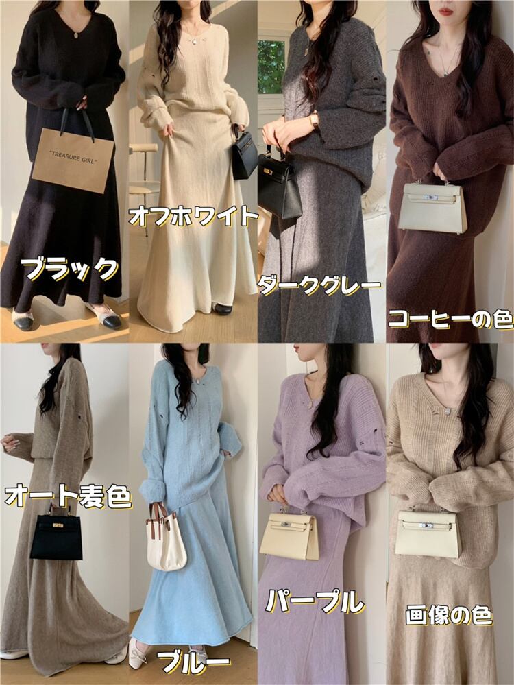ミディアムスカート カットソー ロングスカート セットアップ ハイウエスト 大人気 セーター