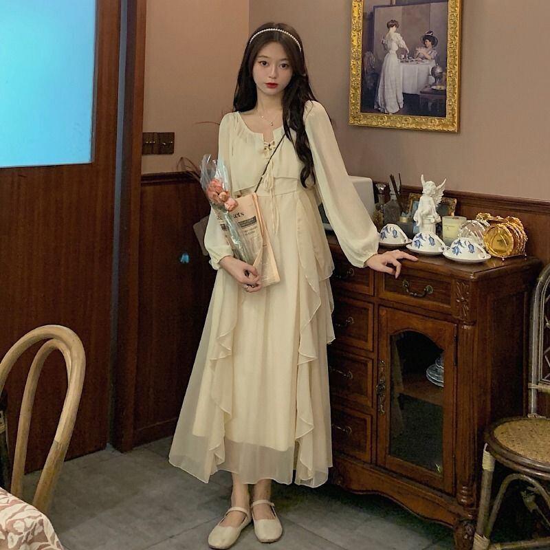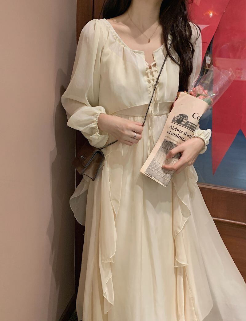 ロング ワンピース シフォンワンピース レディース インナーワンピース カーディガン 長袖 エアリー