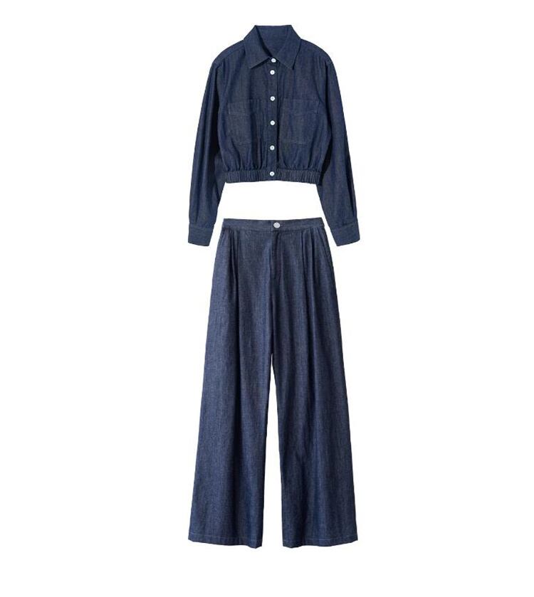 デニムシャツ コート ワイドパンツ セットアップ ロングパンツ