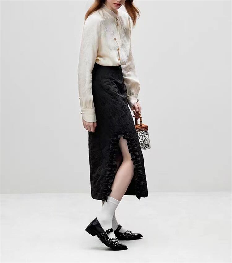 馬面スカート 気質 ロングスカート 長袖 中国風 シャツ 受け取って腰 上着 スリム セットアップ