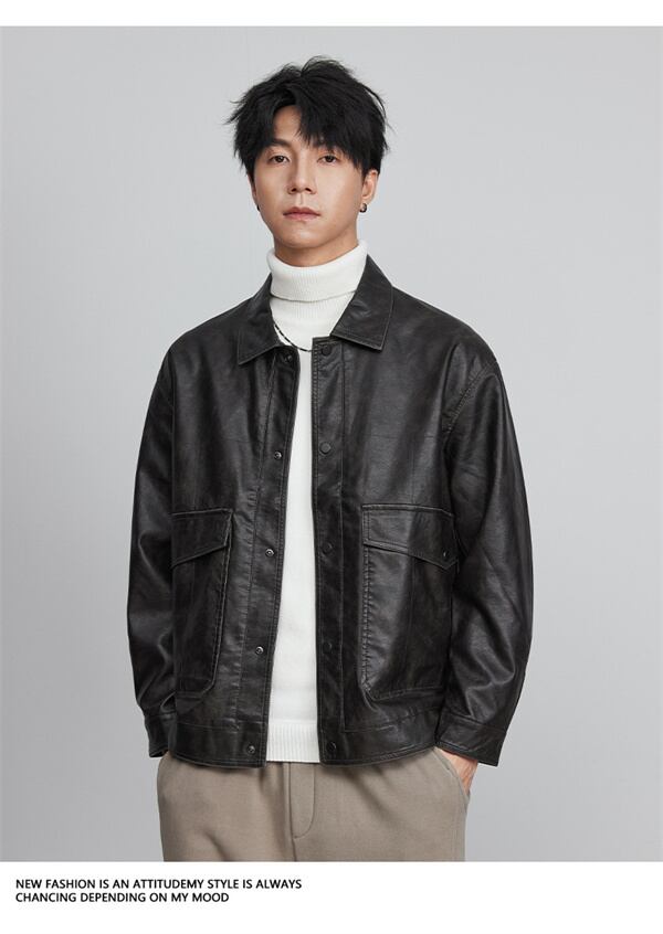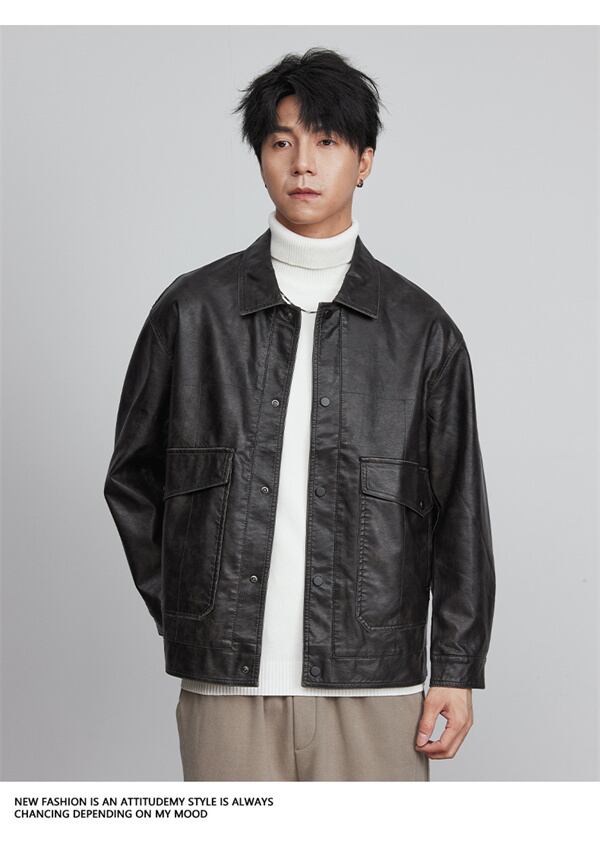 保温 防風 トッブス コート長袖 メンズ 加厚 ヴィンテージ PU