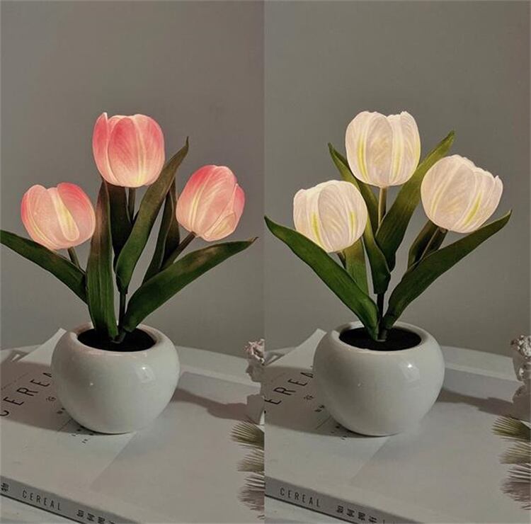 常夜灯 LED チューリップ デコレーション アンビエントライト テーブルランプ イミテーションブーケ
