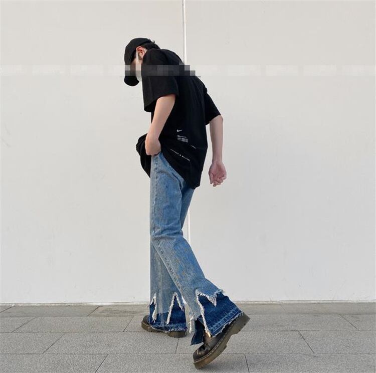 新しいデザイン ダメージデニムパンツ ゆったりする スリム ストレート ジーンズ ストリート スラックス