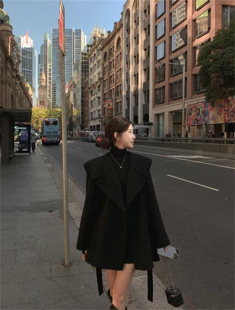 フリースコート レースアップ あったか コート スリム ブラック