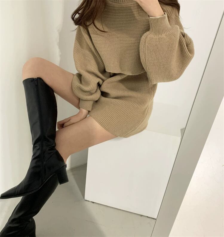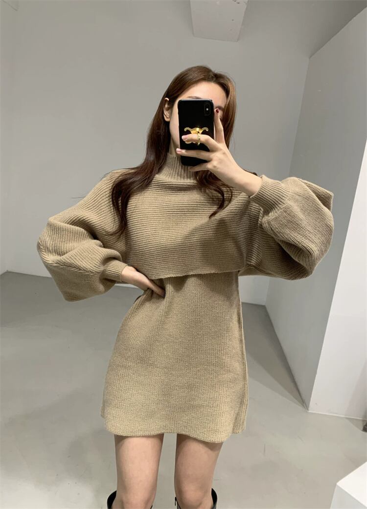 セーター 袖なし ワンピース カットソー ミニスカート ニットトップス セットアップ