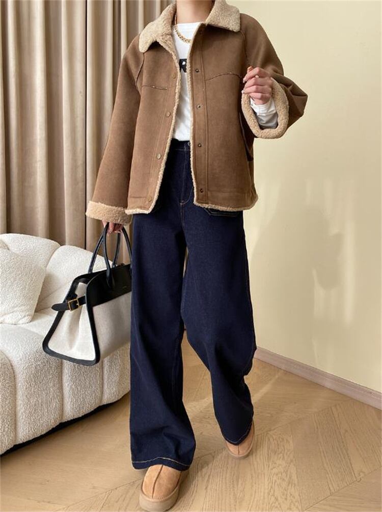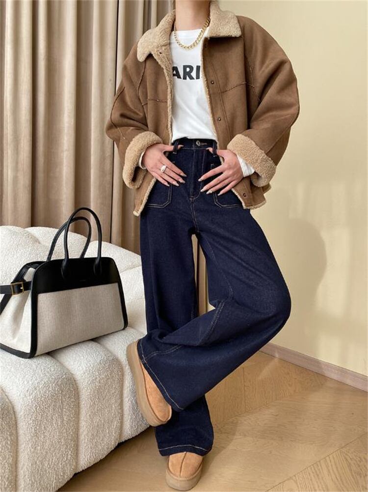 ジーンズ ライン ロングパンツ ダブルポケットのデザイン 縫付 ストレートパンツ ワイドパンツ