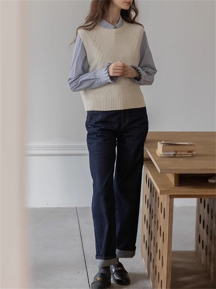 毎日着たいデザイン ウール ラウンドネック トップス ニットベスト タンクトップ 袖なし 上着 スプリット