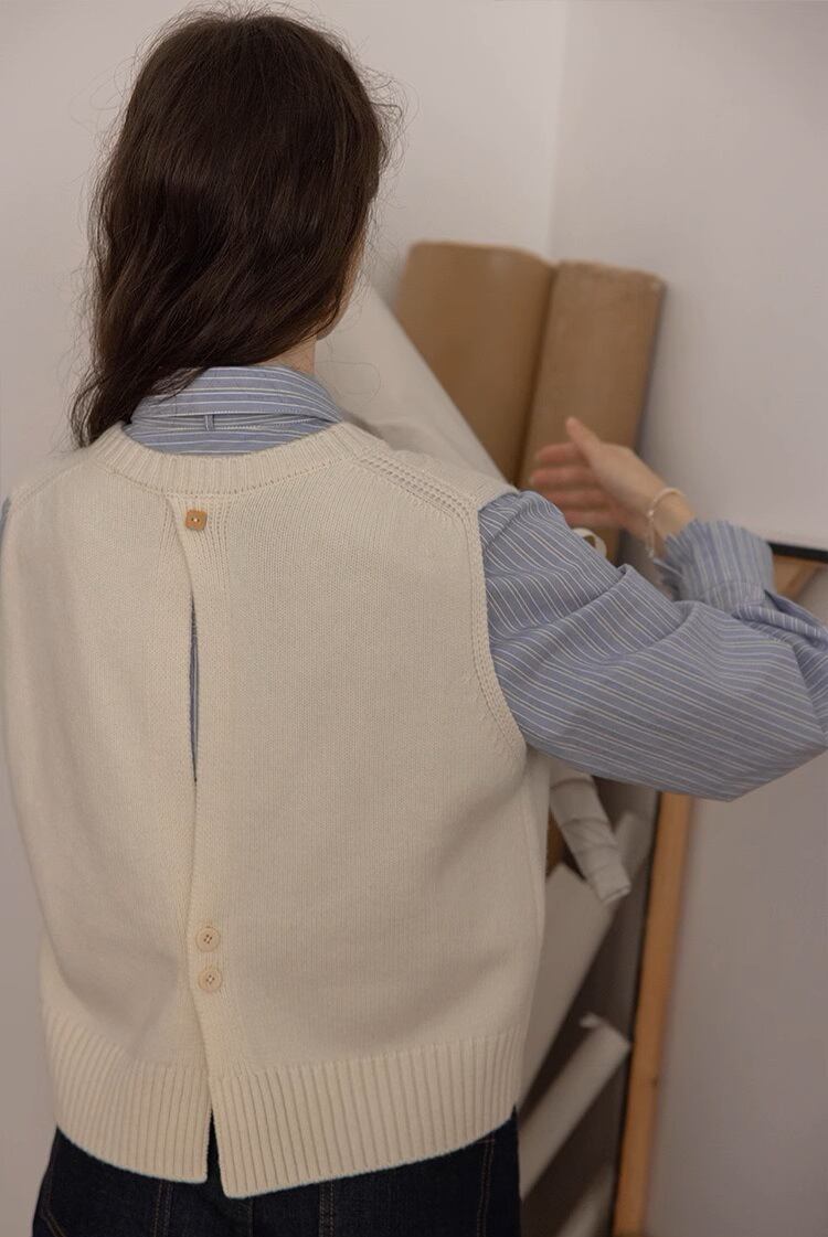 ウール ラウンドネック トップス ニットベスト タンクトップ 袖なし 上着 スプリット